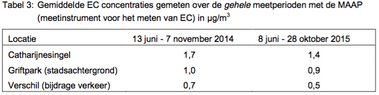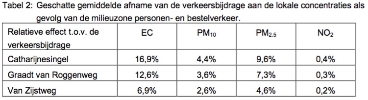 Het feit dat in de steden Rotterdam en Amsterdam, waar nog geen milieuzone voor personen- en bestelverkeer was ingevoerd, de afname van de gemeten EC concentraties minder groot is dan in Utrecht lijkt deze conclusie te ondersteunen.