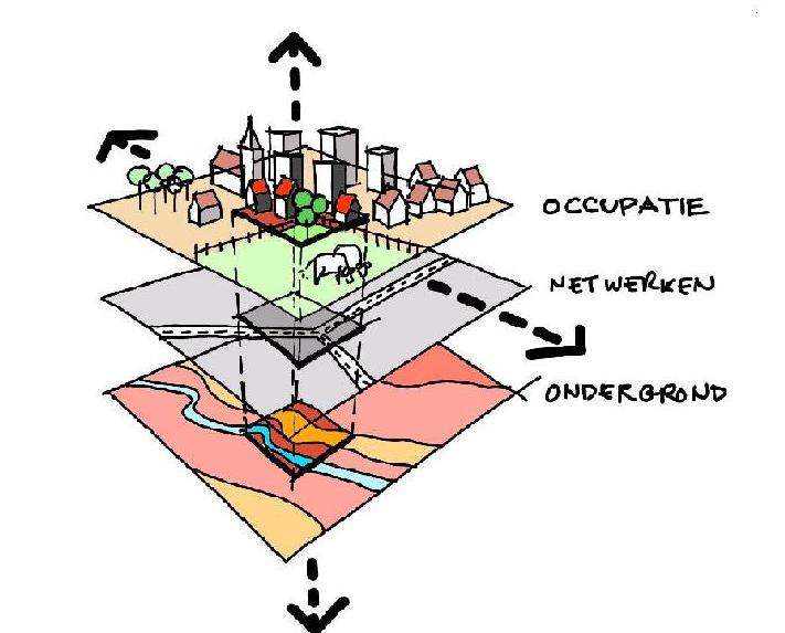 Bij het ontwerp van integrale gebiedsontwikkelingen wordt regelmatig gebruik gemaakt van de lagenbenadering. De lagenbenadering verdeeld de ruimte onder in drielagen; de ondergrond (bodem en water), de netwerken (infastructuur en bijvoorbeeld hoogspanningsleidingen) en de occupatie (menselijke activiteiten zoals wonen, werken, et cetera). Elke laag heeft haar eigen karakteristieken die worden geanalyseerd en vervolgens worden verbonden met de analyse van de andere lagen. Zo worden de onderlinge effecten (die in de occupatielaag veelal een kortere termijn behelzen dan in de ondergrondlaag) inzichtelijk gemaakt.