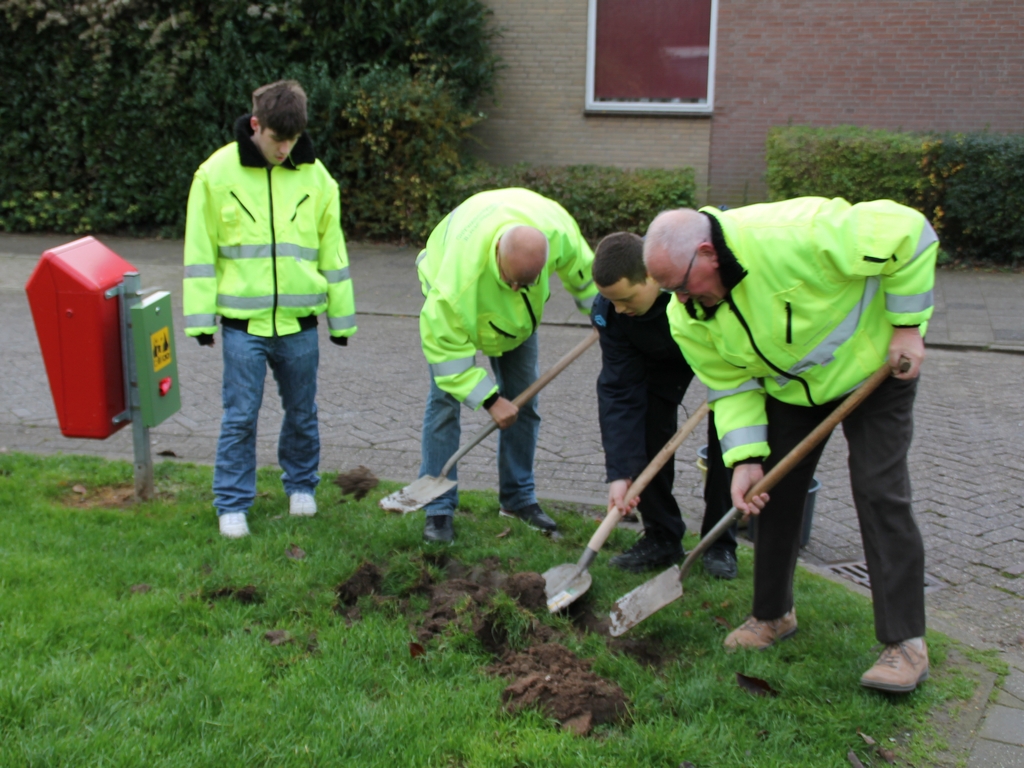 Foto: Samen narcissen planten. Bron: Buurtnetwerk Rhoon-Noord