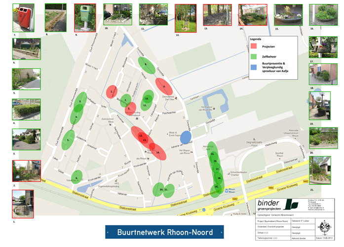 Bewoners worden dan actief om andere geldbronnen te zoeken. Dat is ook gelukt in een aantal gevallen. Zo hebben in projecten het Oranjefonds, de woningbouwvereniging en een vastgoedorganisatie meebetaald aan groenbeheer en omvorming. De schouw wordt op de gebruikelijke wijze gedaan door de gemeente. Ook de burgers doen een burgerschouw. Dat is sterk veranderd ten opzichte van de oude situatie. De traditionele vakspecialistische beeldkwaliteitsschouw wordt maandelijks met een technisch schouwsyteem vastgesteld. Het Buurtnetwerk gebruikt het als ondersteuning bij keuzes in het beheer en afstemming met gemeente. In deze vorm is het meer een voertuig voor dialoog en ontwikkeling van kennis van het Buurtnetwerk. Daarnaast vinden er regelmatig bewonersschouwen plaats. Die kenmerken zich door een sterk holistische blik op de buitenruimte en het samenleven en werken in de buurt.