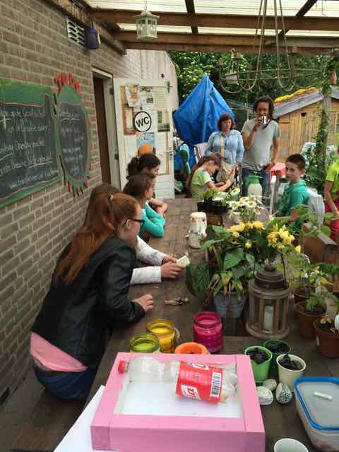 De kinderen hebben, met zaadjes van de Albert Heijn, hun eigen plantjes gekweekt en gepoot. Die plantjes worden gekoesterd. Ze helpen elkaar. Elke woensdagmiddag zijn ze welkom om in hun tuintje te werken.